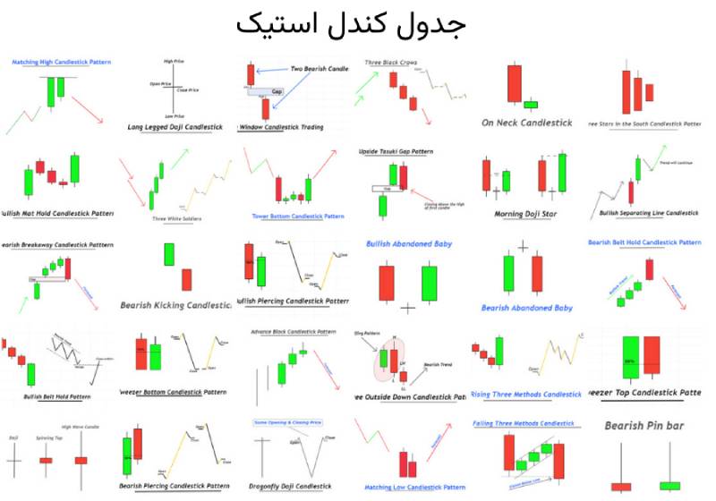 در تصویر زیر نیز میتوانید بطور تصویری الگوهای کندل استیک را مشاهده کنید.