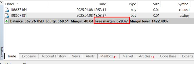 فری مارجین در متاتریدر به مقدار موجودی آزاد در حساب معاملاتی گفته میشود که پس از کسر مارجین استفاده شده در معاملات باز، در دسترس معاملهگر قرار دارد. این عدد در پایین پنجره ترمینال بخش Trade نمایش داده میشود.