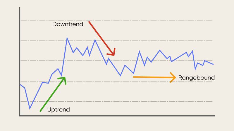 تحلیل روند با استفاده از تحلیل تکنیکال روش کاربردی برای شناسایی حرکتهای قیمتی و پیشبینی آینده بازار است و معاملهگران با بررسی روندهای صعودی (Uptrend)، نزولی (Downtrend) و خنثی (Sideways) سعی میکنند بهترین نقاط برای ورود و خروج را پیدا کنند. استفاده از خطوط روند و میانگین متحرک کمک میکند تا حرکت قیمت بهتر دیده شود. مثلا، روند صعودی با کفهای بالاتر و روند نزولی با سقفهای پایینتر مشخص میشود.